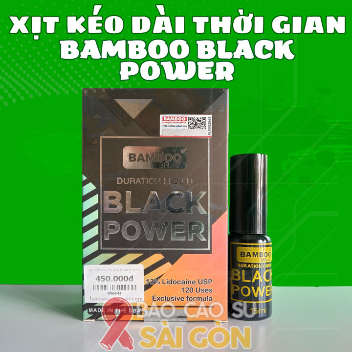 - Chai xịt kéo dài thời gian BAMBOO BLACK POWER là dòng sản phẩm mới xuất hiện trên thị trường mấy tháng gần đây, được công ty TNHH TM & dịch vụ Phước Ngọc nhập khẩu và phân phối. Hiện tại shop chưa thấy có sản phẩm xịt BamBoo Black Power giả, khi nào có BamBoo Black Power shop sẽ chụp hình, quay phim cảnh báo đến các bạn.