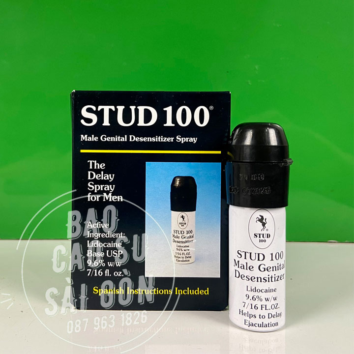 Xịt chống xuất tinh sớm STUD 100 là sản phẩm nhập khẩu từ Anh, được phân phối bởi shop Bao cao su Sài Gòn tại Tp HCM. Với dung tích 12ml, sản phẩm này có thể sử dụng được hơn 100 lần xịt, giúp kéo dài thời gian quan hệ tình dục và mang lại những trải nghiệm tuyệt vời cho cả hai bên.